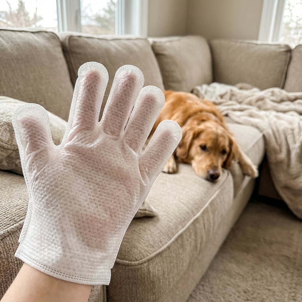 Wipe Glove er utviklet for rask og skånsom rengjøring av pels, poter og hud – helt uten bad eller stress. Hver bruk bidrar til å fjerne smuss og lukt umiddelbart, gjøre hverdagen friskere og redusere behovet for kompliserte rutiner.